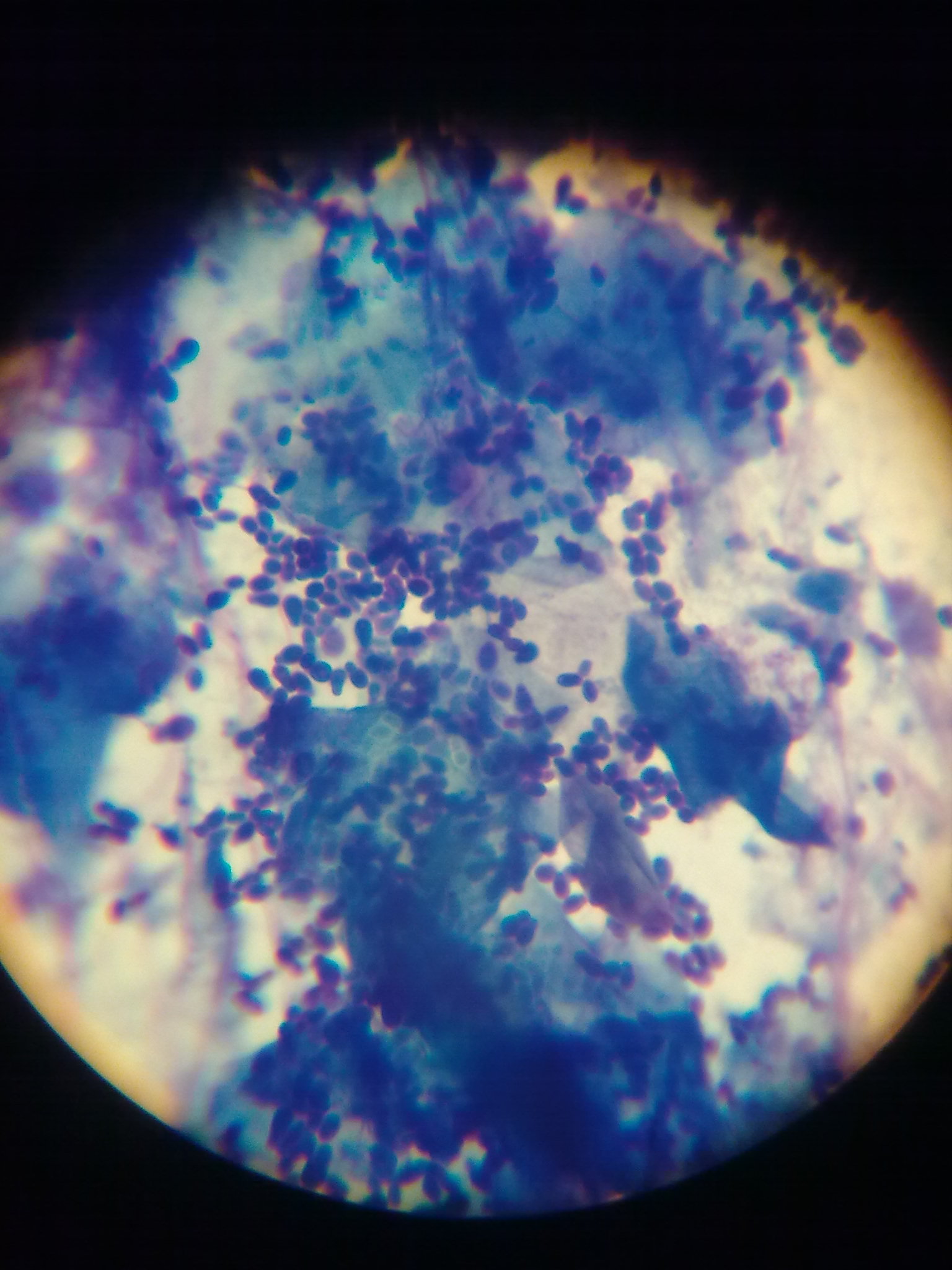 Kvasinky vypadají pod mikroskopem jako tmavě fialové oválky, hruštičky a sněhuláčci.